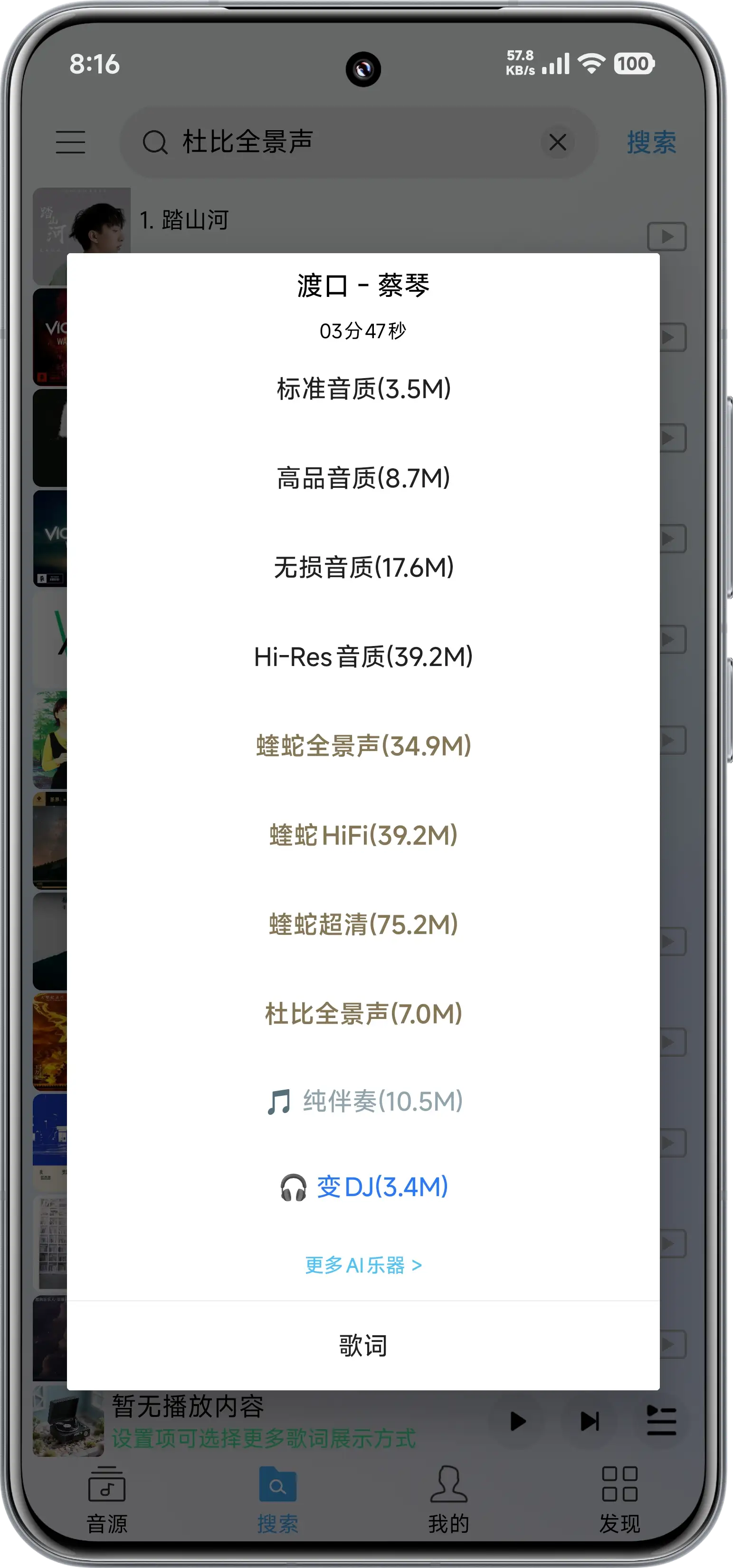 音乐扒手主要提供全网臻品母带以及无损Hi-Res音乐播放和下载服务。支持同步各大音乐站点个人歌单且支持批量下载。拥有60+音视频源:支持臻品母带&杜比全景声&环绕声&WAV、独家音源、数字专辑、写真壁纸、热门歌单、番茄畅听&蜻蜓FM&云听&喜马拉雅&懒人听书会员资源、AI换音、AI乐器、B站(支持电影&电视剧&纪录片&综艺&番剧&MV&直播)、抖音接口、同步全网个人歌单(支持同步自建和收藏的每日30首推荐,我喜欢、听歌排行、歌单、专辑、有声书、播客等)、广场舞、DJ、MV、儿歌、铃声、伴奏、音效、新歌速递、资源云盘等多种功能。音乐软件,一个就够!